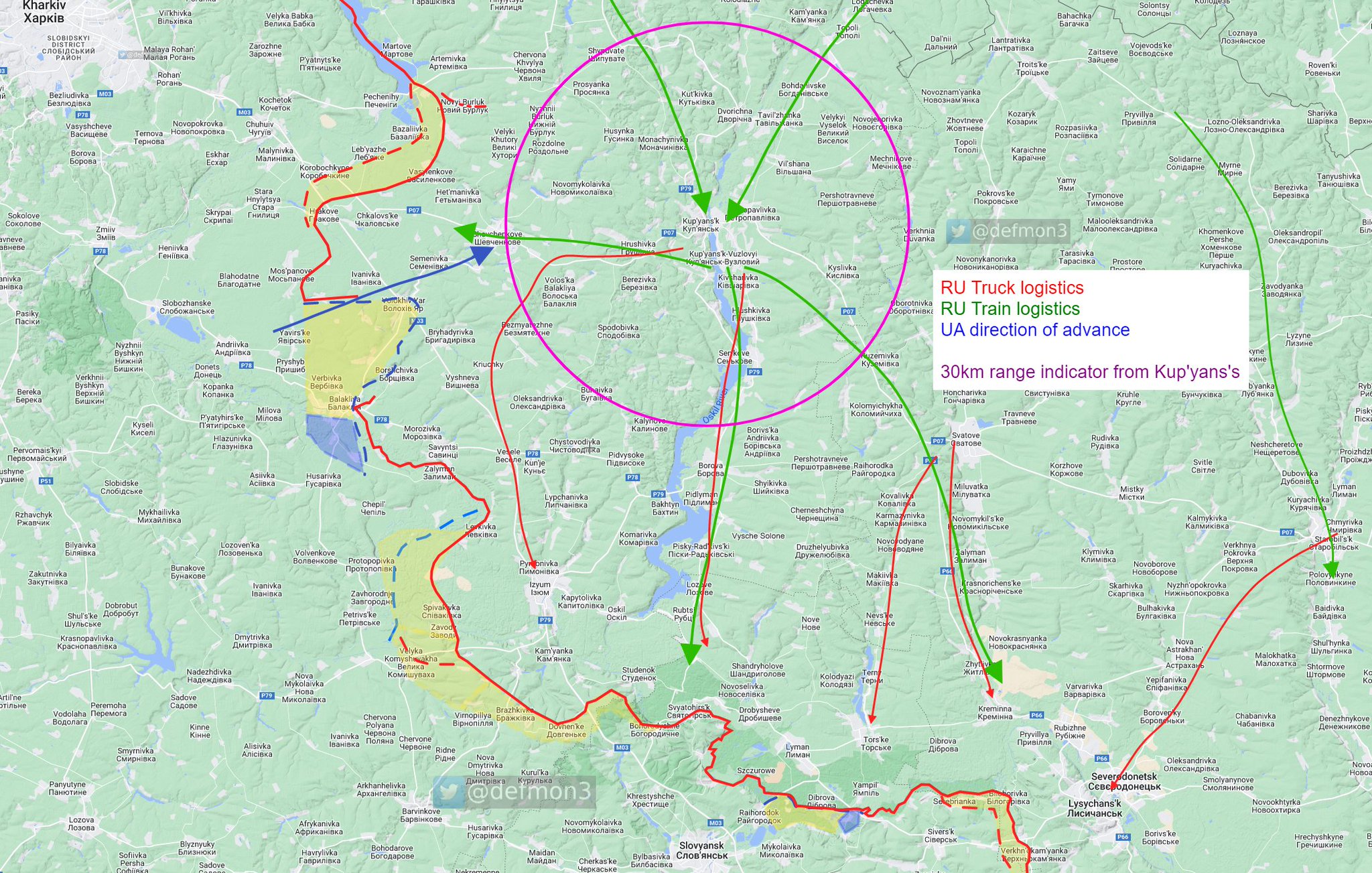 A sorpresa gli ucraini hanno sferrato un contrattacco molto efficace a sud-est di Kharkiv, sono avanzati di diversi km e puntano al cuore dello snodo logistico che alimenta il fronte nord (i rifornimenti che da Belgorod vanno verso il Donbass.
