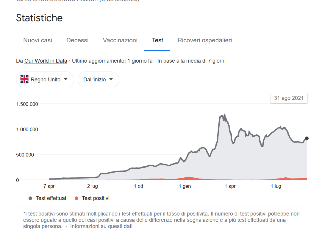 esatto, il discorso è proprio lì. Uk ha sempre fatto una valanga di tamponi, ma non so quanto sia stata qualitativa la ricerca... poi, è pur sempre meglio farne 1mln al giorno di qualsiasi tipo, ma non per forza significa che chi ne fa 300k al giorno di qualità diversa debba avere chissà quale sommerso.