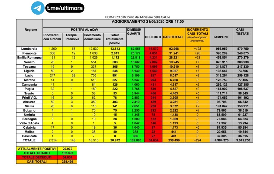 La situazione recente vede un aumento proprio nella prima metà di Giugno (il report si ferma al 14):