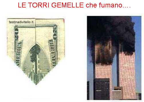 bene se tale foglio viene piegato in un deteminato modo il risultato finale e che ci crediate o non sara il disegno delle 2 torri gemelle col fumo dopo lo schianto degli aerei