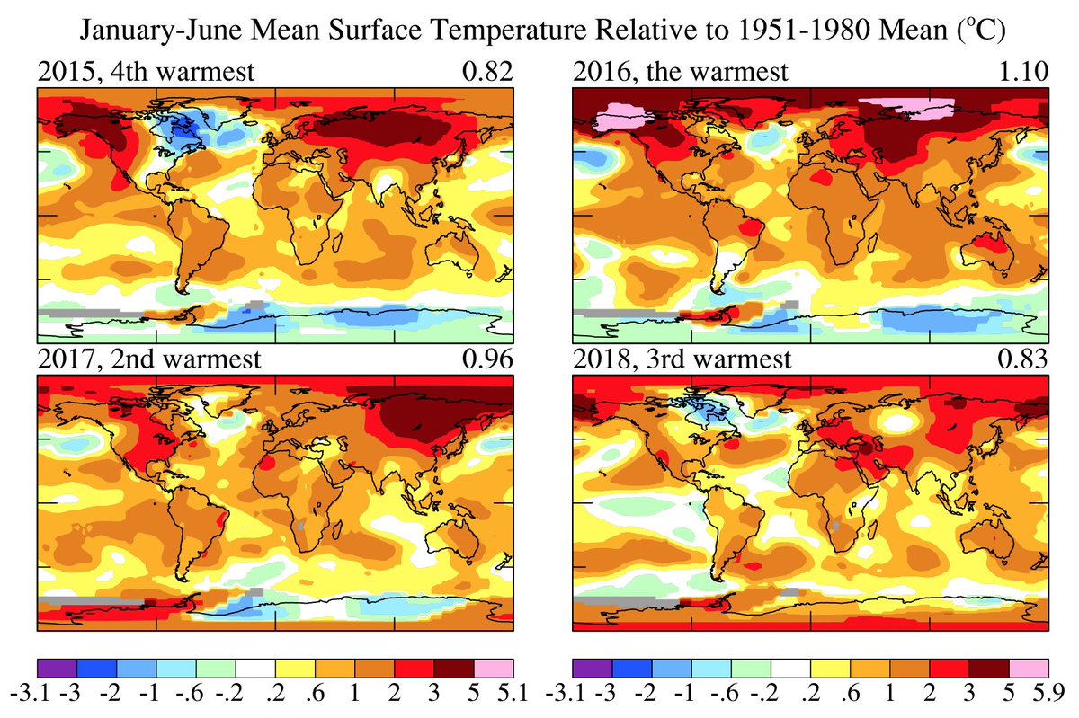 Nel frattempo gennaio-giugno è il 3° più caldo anche nel gisstemp dopo 2016-2017 ma sostanzialmente alla pari con il 2015 a differenza delle reanalisi.