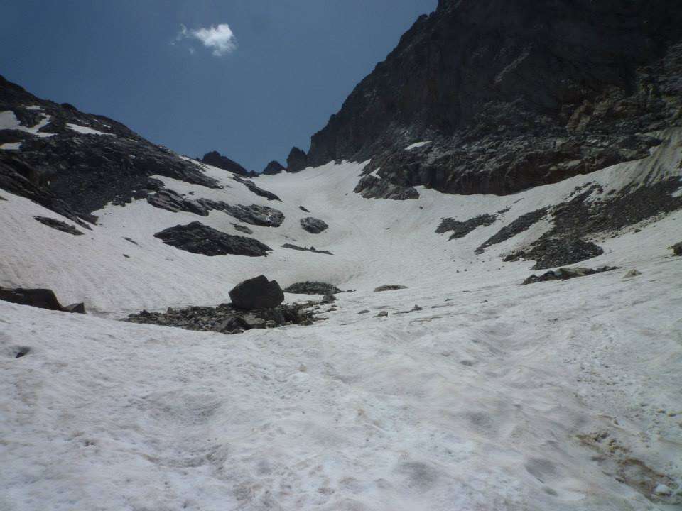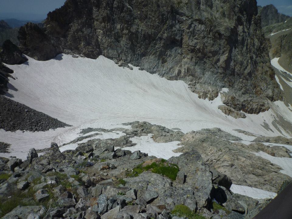 il grosso nevaio presente circa 100 mt sotto il rifugio alla base della cima pagarì