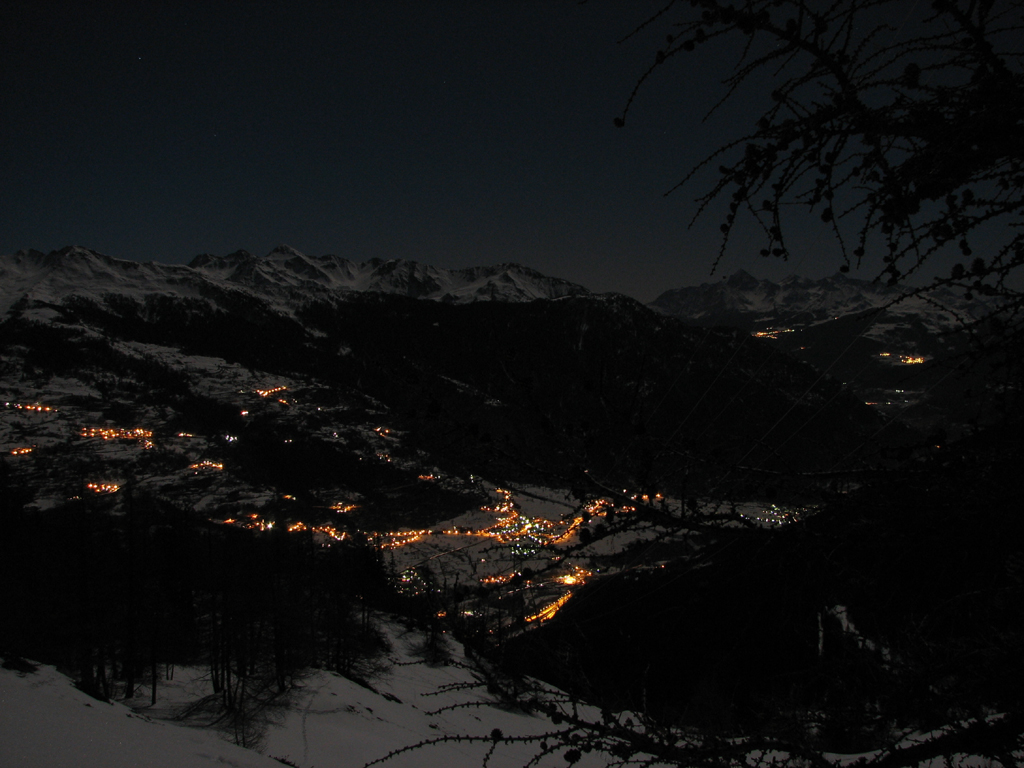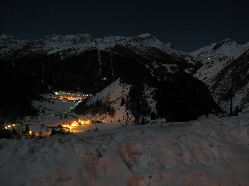 Sabato sera tardi (ore 21-23), mi sono fatto un giro solitario, ciaspole ai piedi, verso il belvedere presso il colle San Carlo ( circa 1950m) (La Thuile/Morgex - VdA). complice la luna piena e le temperature non siberiane è stata una bella esperienza.