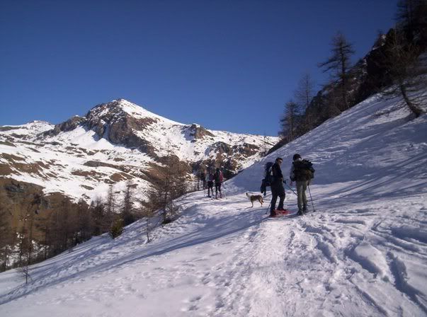 e ampie chiazze erbose/sassose, quindi in un continuo metti-e-togli le ciaspe.