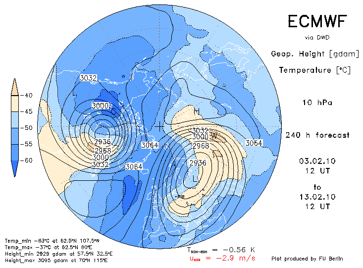 Per come le fanno vedere le Reading sembra che si attui uno split con asse passante sull'Atlantico e pure in timida avvezione calda ..... roba rara insomma, laddove è a noi positivo addirittura uno stratwarming