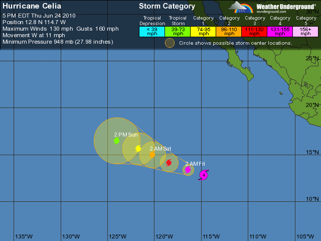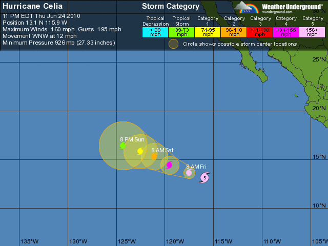 Celia esplode fino a CAT 4,venti fino a 160 mph