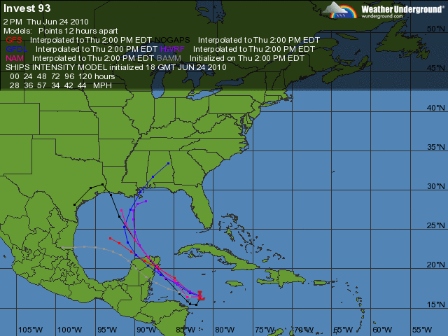 dato che le condizioni sono abbastanza buone per il suo sviluppo, la traiettoria sarà fondamentale. il passaggio in yucatan non sembra particolarmente intenso e farà calare bene la tempesta ma poi.....