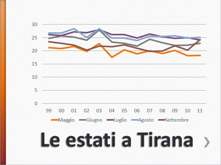 Cmq i dati che ho su Tirana dicono che non č particolarmente nevosa,ha buone inversioni termiche ed una media annua di circa 15°.