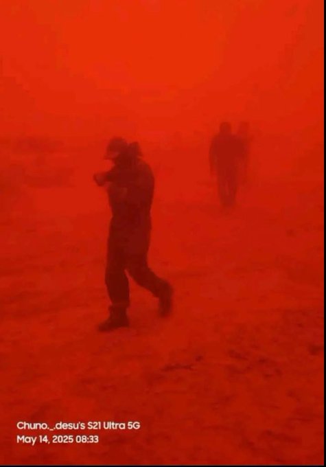 Segnalati da venerdì 9 maggio diverse tempeste di sabbia/sollevamento di polvere/ventoso o molto ventoso con sabbia (come oggi)/sabbia nell'aria. Ad esempio oggi la visibilità fatica a superare 1/2 km; ieri invece il culmine è stato con la raffica massima di 87 km/h con venti da Sud/Sud-Ovest al pomeriggio e dew point a 8/9°C con visibilità di 50 m (dalle immagini anche ben meno), il tutto con temperature sempre attorno i 33/34°C!