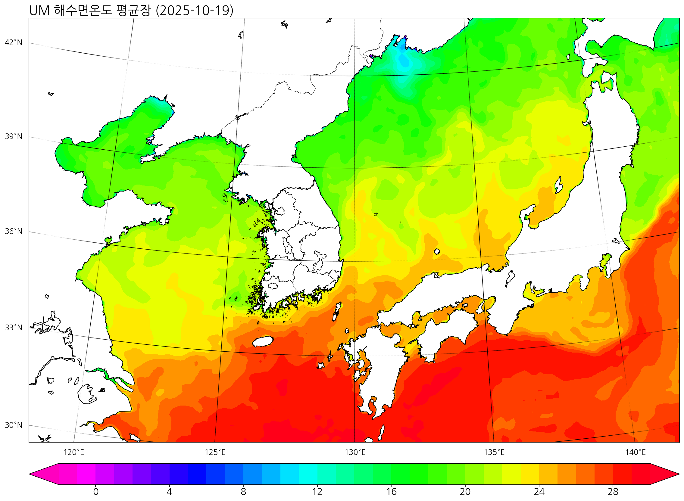 senza parole. temperature attuali del mare a sud della Penisola di Corea. Guardate ci sono picchi sopra i +29.