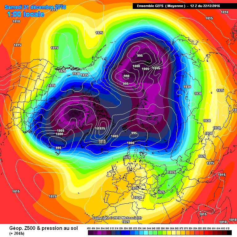 Intanto, al di là dei bei miraggi sul lungo termine (comunque per lo meno condivisi da più modelli, quindi che iniziano ad avere un minimo di attendibilità), c'è da sottolineare una rilvalutazione verso il target parzialmente italico della sciabolatina del 28 dicembre, che non è fra un mese, ma fra qualche giorno. Dove ieri e stamattina si vedevano le 0° in quota o addirittura temperature positive, stasera abbiano le - 3°/-4° che stazionano per almeno due o tre giorni. Per non parlare dell'influenza marcata che questo minimo artico avrebbe al sud e sul medio Adriatico.