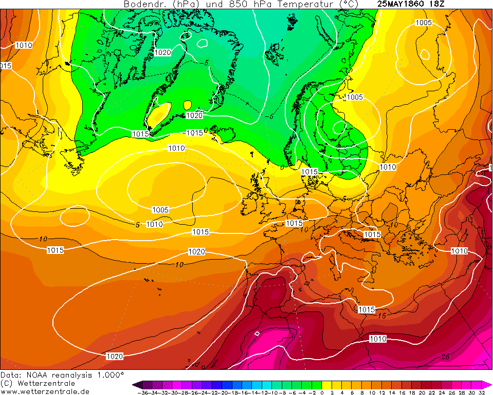 periodo piu caldo in Italia e in gran parte d Europa, tipicamente estivo , tra la 2a e 3a decade di maggio 1860 , con temp massime tra i + 25 e 30 gradi