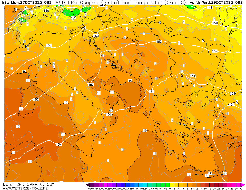 Al di là degli effetti per quanto concerne i fenomeni e la loro localizzazione, che non è oggetto della presente analisi, si nota un blocco centrato sull'Europa centro meridionale che di fatto non riesce a fare progressi di sorta in quanto interdetto nel suo movimento retrogrado verso nord ovest dal getto atlantico e verso est dalla profonda differenza termica e di caratteristica tra le masse d'aria gelide che si trovano sui territori sopraindicati e quelle miti che gravano sotto la cupola altopressoria.