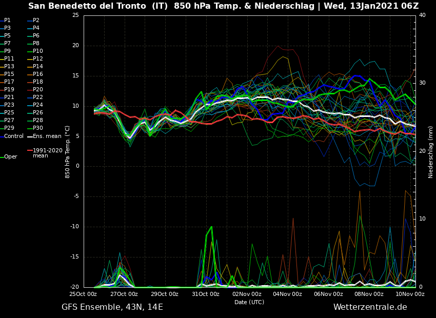 A tal proposito già da più corse il modello ha visto questi giorni intorno al 25 come potenziali dispensatori di fenomeni perturbati e freddi per noi. Oggi notavo nei miei spaghi GFS 00 un certo spread più marcato proprio per quel periodo.