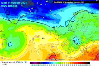 Previste anomalie fino a -8°C dalla media ad 850 hpa su: Balcani, versanti adriatici italiani, ma anche in Francia ed Europa centrale.