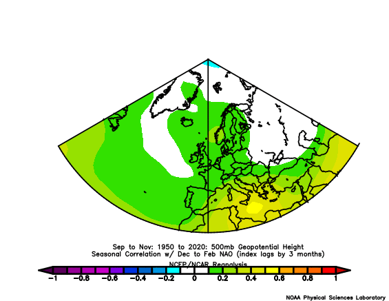 La correlazione tra GPT autunnali e NAO invernale appare buona in quel settore quindi lì deve mantenersi una bella circolazione depressionaria il più a lungo possibile![]()