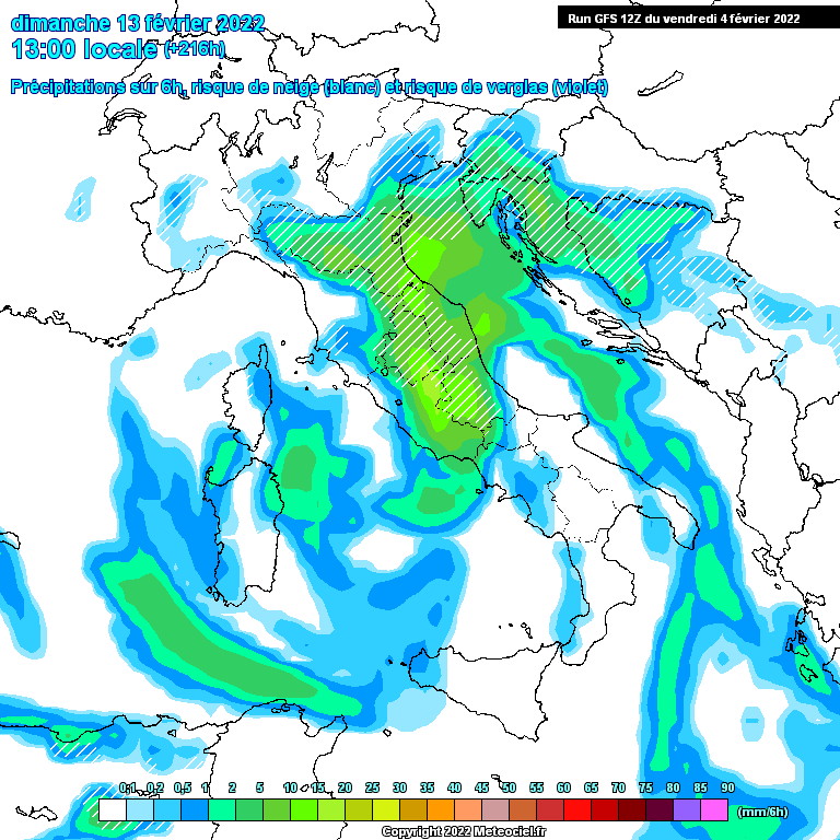 Neve su tutta la pianura e costa del Nord est il 12 febbraio per gfs12