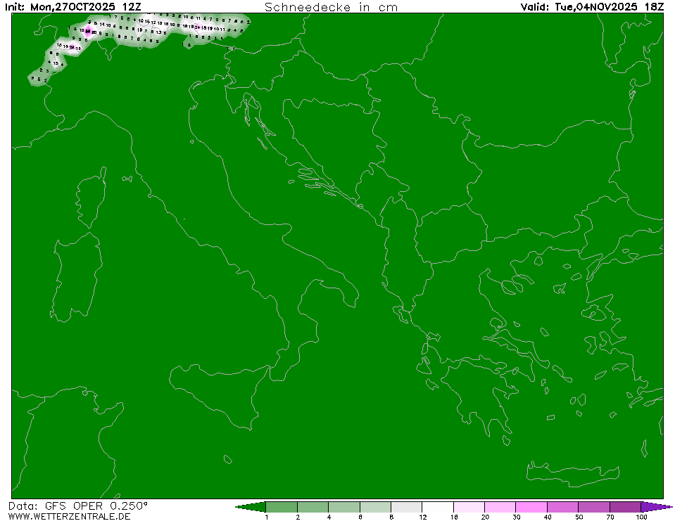 Il passaggio di un fronte oltralpe porterà nuove nevicate sulle Alpi confinali e probabilmente episodi di sfondamento con nevicate su alcune zone anche nel lato Italiano, tra le più rinomate: Cervinia, Livigno, Valle Aurina (in Sudtirolo)...sarebbe da andare tanto per vedere almeno nevicare.