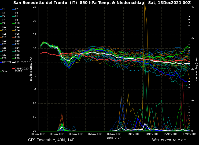 Lo spread delle ENS è dato dal fatto che molti spaghi vedono quel famoso varco anticiclonico in mezzo al treno di LP atlantiche che butta giù aria particolarmente fredda, ma se nel medio termine si assesta la configurazione a favore di un isolamento totale verso ovest e flusso mite sul Mediterraneo centro orientale, le ENS non daranno nessuna indicazione in merito né abbasseranno la media solo perché adesso ci sono molto spaghi freddi. Questo almeno è come la vedo io, certo allo stato attuale ti girano le palle per cone Dicembre sia partito bene e poi arriva quella schifezza mite per Natale ... vabbe, andiamo con calma.