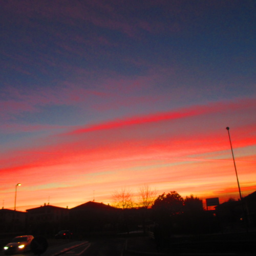 Velature e altocumuli di passaggio hanno limitato il calo notturno con minime attorno ai -2, però hanno regalato una bell'alba.