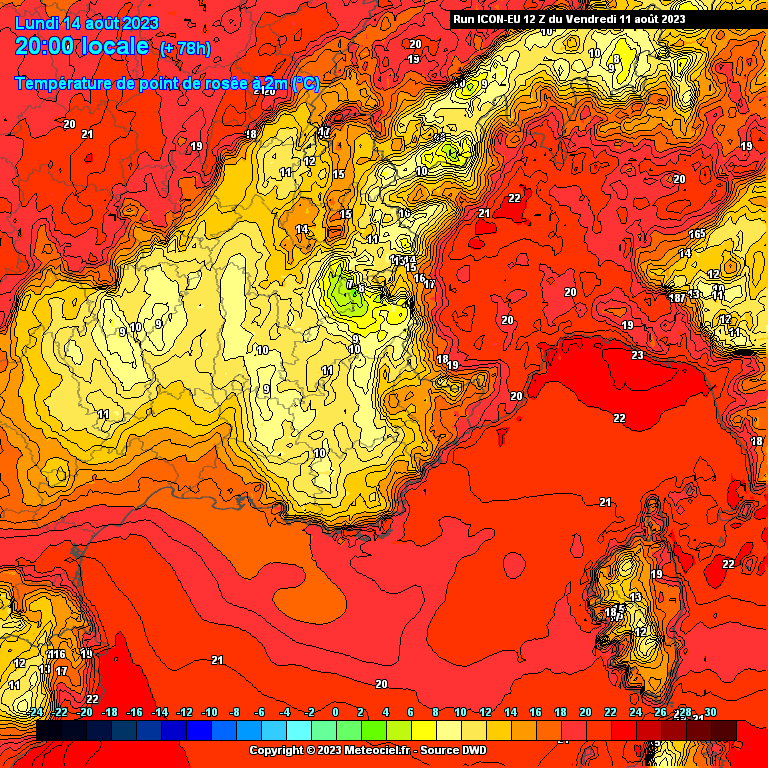 Tolta la persistenza del caldo che ha iniziato ad invadere l'Italia, quello che più farà impressione saranno i DP stellari senza soluzioni di continuità su gran parte della Valpadana. Da notare anche i geopotenziali notevoli con massimi oltre 600dam ad Ovest dell'Italia e cmq spero e volentieri valore che potrebbe sfiorarti sulle Alpi...