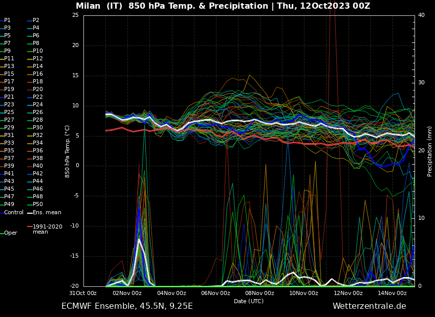 Ecmwf molto molto più precipitativo per il nord : lotta fra titani nella coda del run fra aria gelida da nordest e aria bollente da sudovest con la 20° a 850 su sud italia/Sicilia...mah...per il nord, ovest in particolare, lato prp andrebbero bene, lato termico meno...personalmente avrei preferito una maggiore ingerenza dell'aria fredda en interazione col flusso atlantico basso, ma tant'è.