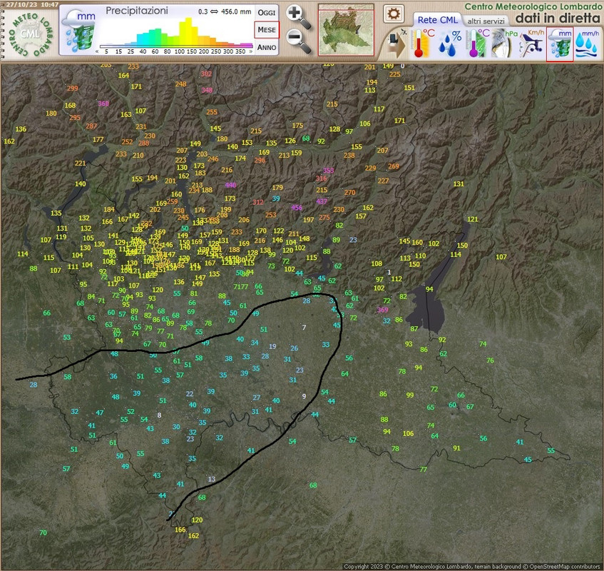 Ancora poco colpita la mia zona, peggioramento a 1.6 mm. Chissà se entro fine anno riuscirò a raggiungere la media annuale pluviometrica o andarci vicino (che è circa 750-800 mm), sono a 565 mm.