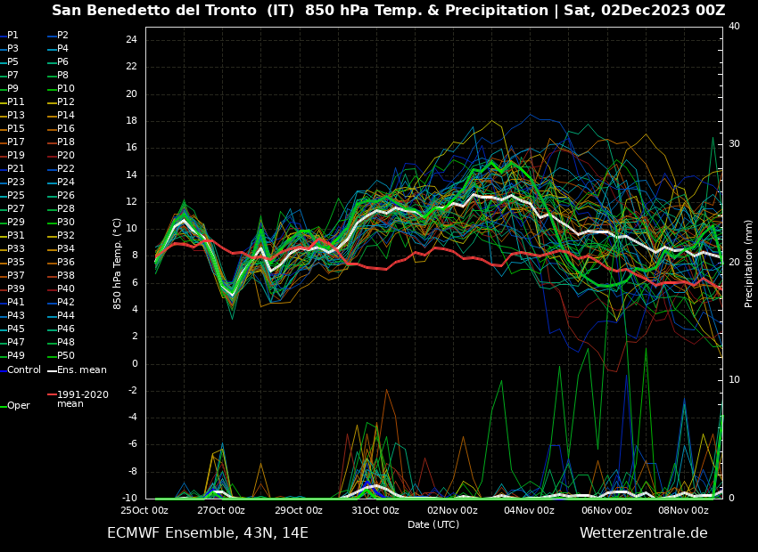 Che dire.....seguendo le medie non mi sono fatto mai troppe illusioni rincorrendo le corse ufficiali che causano spesso saliscendi umorali. A vedere quelle dei due modelli principali sinceramente dubito che mi attenda nei prossimi 10 gg qualcosa di molto rilevante. I miei spaghi sono senza infamia e senza lode e non troppo precipitativi. Di rilevante, dopo le nevicate a quote montane piuttosto basse è arrivata una libecciata furiosa ancora in atto che ha fuso tutto ma ormai si va verso un prossimo e rapido raffreddamento.