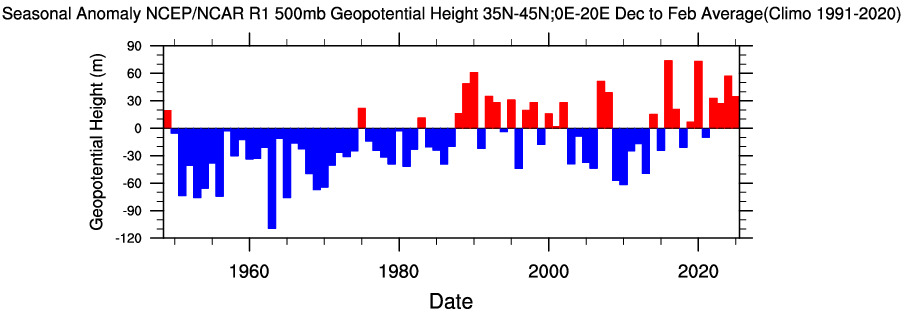 Anomalie al Gpt a 500 hpa in Italia invernale