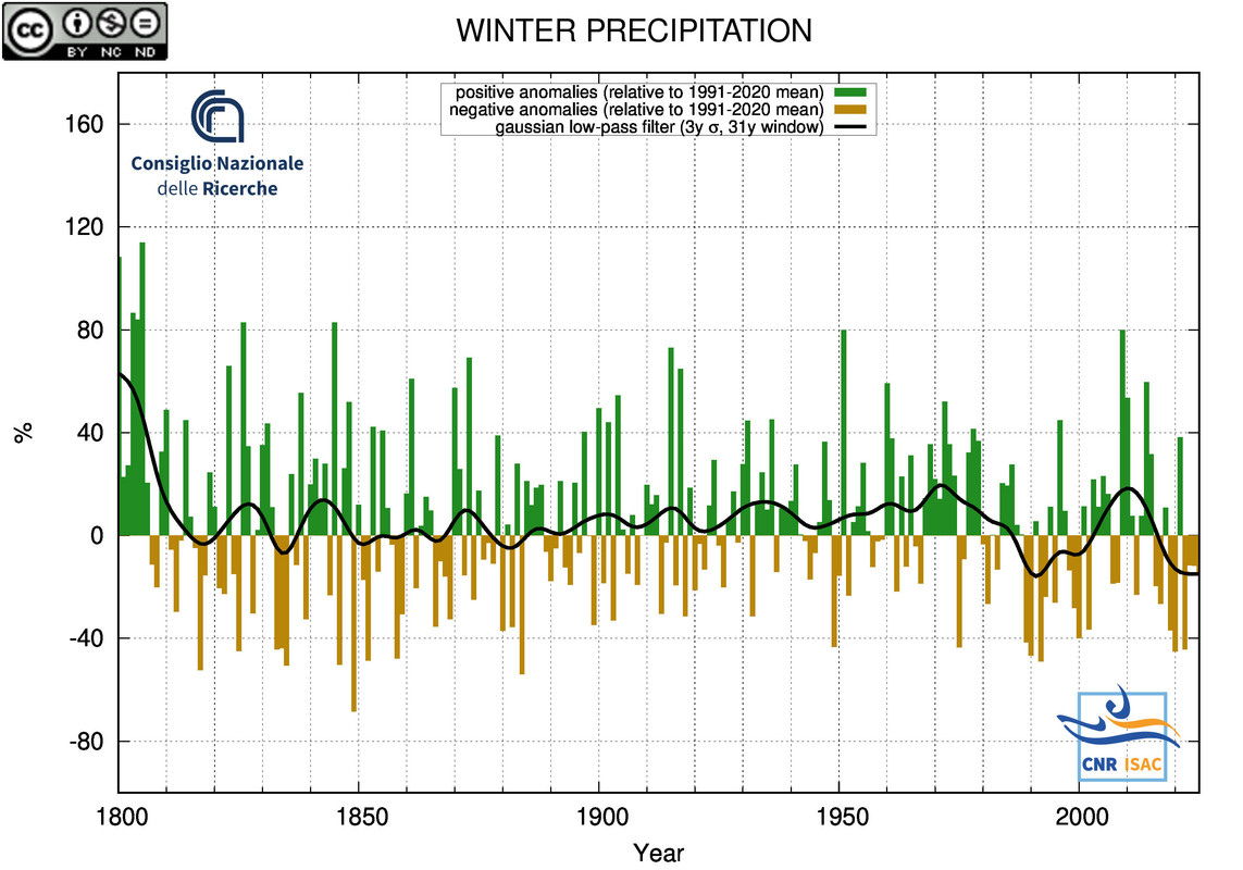 Anomalie alle precipitazioni in Italia in Inverno