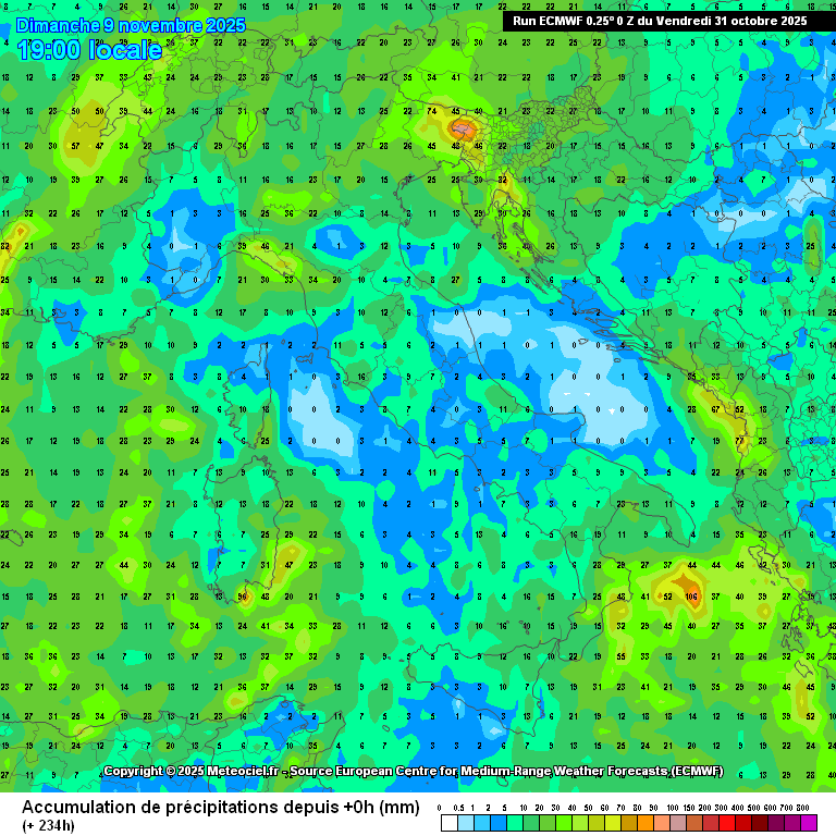 Intanto in Italia le aree con maggiori precipitazioni sono le Alpi Friulane verso il confine Sloveno, Liguria di Levante ed Alpi Apuane ed Est Calabria (nel breve/brevissimo termine), oltre al SE Sardegna (nel lungo termine):