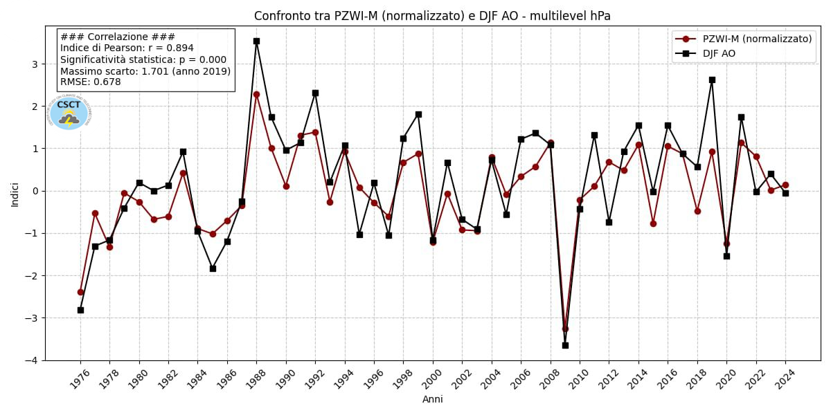 La correlazione con la AO è prossima al 90%, questo è il grafico e puoi farti un'idea andando a considerare gli anni caratterizzati da un SSW.