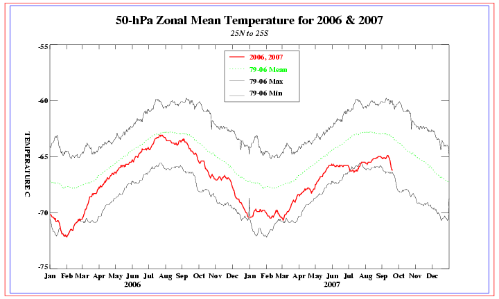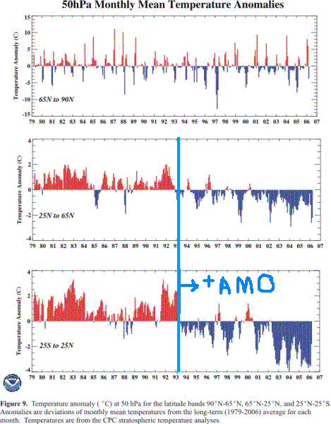 AMO+??), determinando una progressiva diminuzione dell'ozono cui è corrisposto una diminuzione della temperatura stratosferica in prossimità dell'equatore: