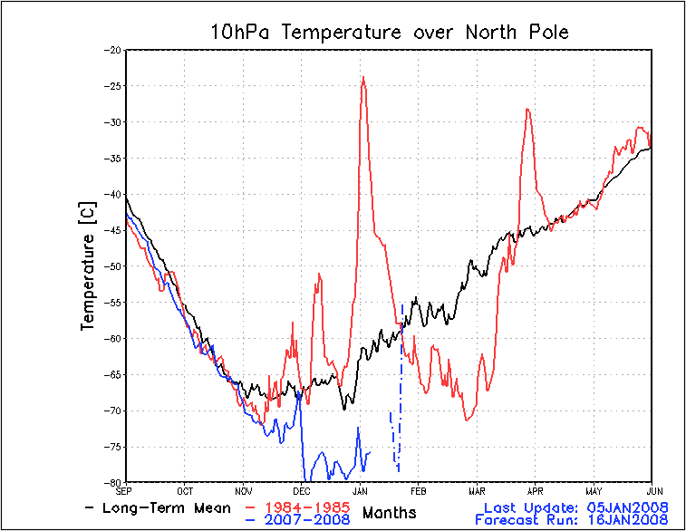Cmq questo Minor Warming, seppur ulteriormente sfavorevole per noi in quanto porterà ad un rafforzamento del canadese, è già di per sè eccezionale, sono previste T a 10hpa più alte di -20°.....na roba così non s'è vista neppure nel MMW del Gennaio 1985: