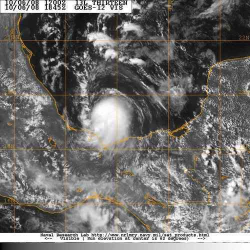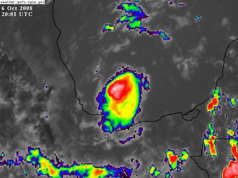 Tropical Storm "Marco" a rapporto, l'ultimo recon dą venti a 61kt ad altezza di volo e fino a 53kt SFMR. La pressione estrapolata č di 998.5mb.