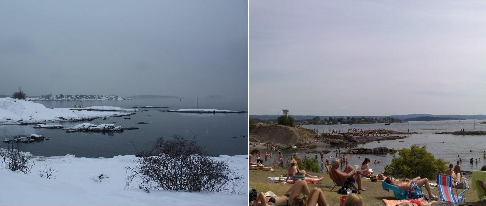 Un paio di fotografie di contrasti tra l'inverno e l'estate a Oslo