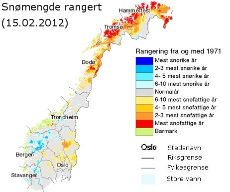 Come sospettavo (c'erano ancora dubbi?) questo è stato l'anno meno nevoso nelle coste del nord della Norvegia dal 1971, ovvero da quando le rilevazioni sono effettuate da stazioni ufficiali e certificate dall'ufficio meteorologico reale.