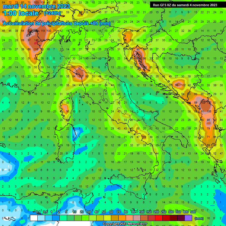 Nella tendenza di GFS 0 non si intravede nessun serio cambiamento nei primi 15 giorni di novembre per le zone adriatiche e ioniche, piogge scarse a carattere episodico.