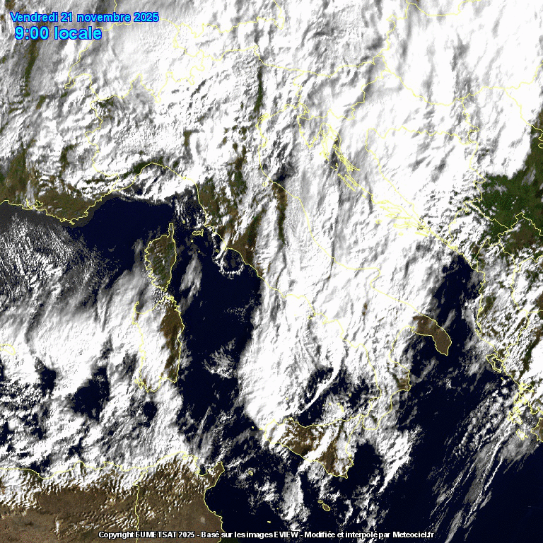 Si nota la linea di rovesci e temporali da Sud-Ovest lungo il fronte freddo sceso: