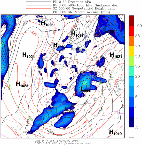 Mi attendo un 10cm marci e pesanti che andranno rapidamente sparendo con la pioggia che cadrà nella tarda mattinata di venerdì. Si potrebbe anche rivedere un bell'episodio di pioggia mista a neve, come non si vede da tempo qui a Milano. Inoltre la temperatura al suolo durante l'evento non andrà certo oltre gli 0°C, probabilmente +1°C in centro città; con questo è chiaro che ogni mm di pioggia equivale a mezzo cm.