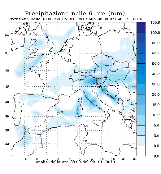 Da martedì coperto con precipitazioni moderate, nevose oltre i 500 m e localmente a quote inferiori.