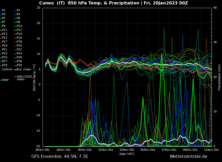 come dicevo ieri assolutamente nessuna chance per medio-alto piemonte, discorso diverso per il cuneese. In ogni caso dopo questa occasione per le basse pianure un'altra decina di giorni secchi non ce li toglie nessuno, vedremo se più o meno caldi....