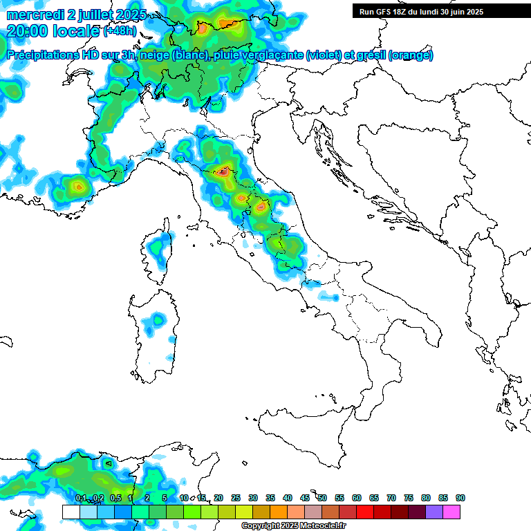 Aumenta la probabilità di pioggia con piovaschi isolati mercoledì in prima serata, secondo GFS: