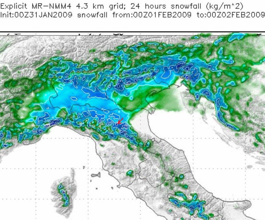 Io sono esattamente nel puntino indicato come tra i più nevosi di domani....