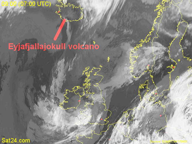 Faccio notare che tutti gli aeroporti dei paesi toccati dal fumo (UK, Irlanda, Spagna, Portogallo) sono aperti e operativi al 100%, e anche se quest'animazione mostra tutto nero, non devi interpretarlo come una nube di fumo nera che sta gironzolando per l'Atlantico, ma particelle invisibili nei medi-bassi strati - a parte le zone immediatamente a ridosso del vulcano, s'intende.
