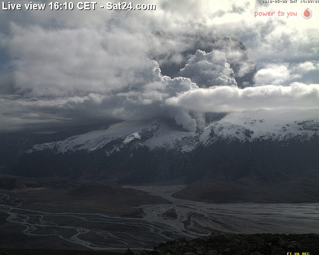 dal vulcano si stanno sprigionando immense nuvole di vapore e cenere..soprattutto sul fianco sinistro (vedendo dalla wcam)