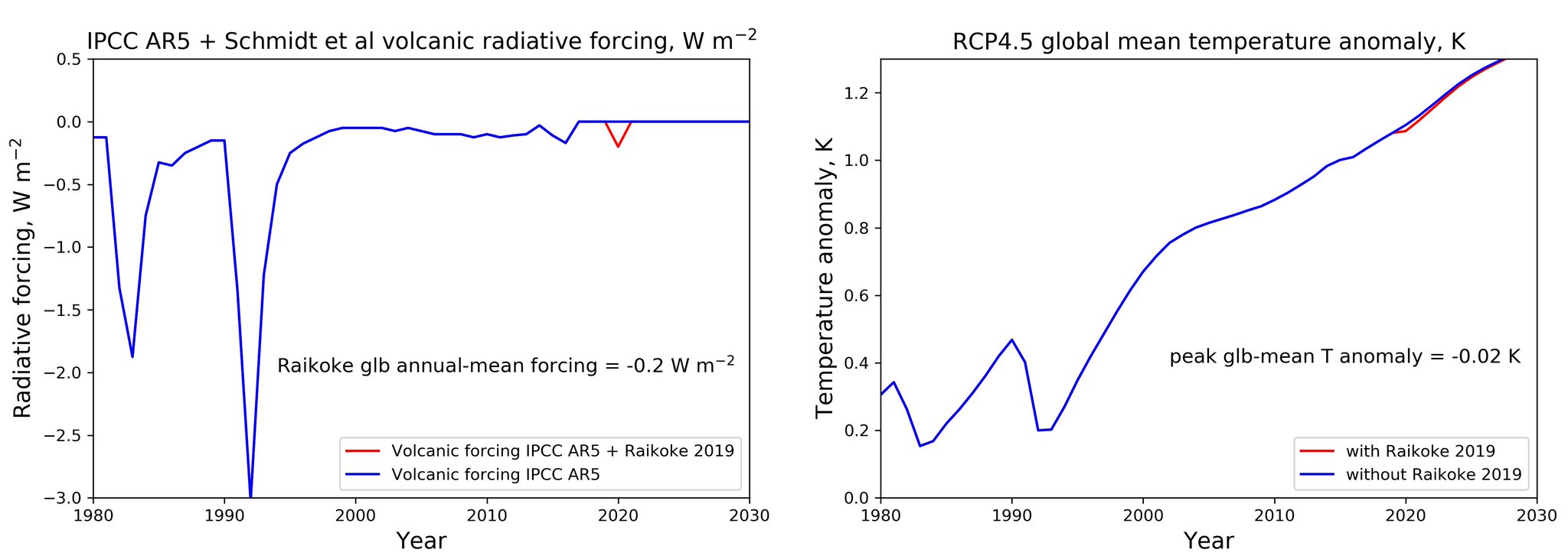 Dr. Anja Schmidt on Twitter: "#Raikoke eruption is likely the largest in terms of amount of sulfur released into the stratosphere since Nabro in 2011. Forcing not insignificant but surface temperature change is tiny (predicted using a simple climate model called FaIR developed by @chrisroadmap @Piersforster)… https://t.co/Zm5wIN281f"