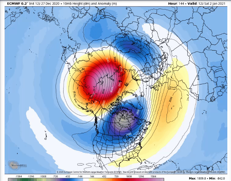 Reading persiste forte con lo split a 10hPa a 240h... e lobo siberiano sull'Europa...