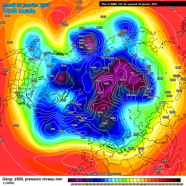questa carta pur essendo a lag xl è da qualche run che viene confermata ...rotazione del vps sul Canada ad opera della wave 1 in posizione ottimale ...questo potrebbe portare ad uno svuotamento delle vorticita in area siberiana con il ripristino del SH e una divergenza del getto in uscita dal continente nord americano con la possibilità di elevazione dell' onda planetaria atlantica con asse SW- NE con la possibile formazione del pattern scand + e se ci fossero le condizioni anche di un ponte di wejkoff , veicolando masse di aria gelida sul mediterraneo ed Europa meridionale in confluenza con un basso flusso atlantico . Grossomodo rispecchia le mie aspettative temporali ( 15 GG ) per il ripristino di nuove forzanti di blocco al flusso zonale dopo lo smaltimento del segnale post displacement in troposfera ... Ad occhio tutto potrebbe concretizzarsi entro la prima decade di febbraio ...